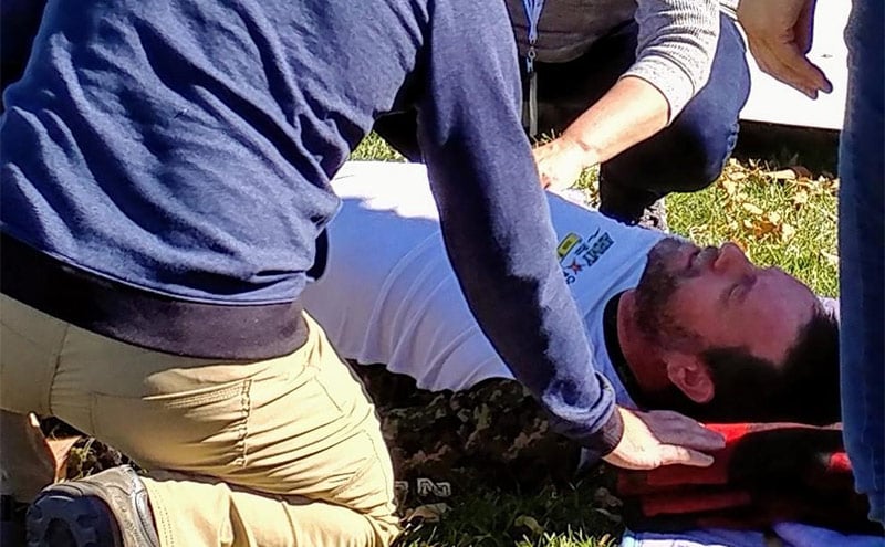 Numerous volunteers from many organizations also came together to re-create the complexity that occurs during an actual mass causality situation. Mock victims, police, news reporters, emergency radio, and EMS personnel all helped set the scene. Attendees worked together to triage, treat, and transport patients as well as interact with personnel from various agencies. All participants had the opportunity to practice skills in both the wilderness and disaster settings. In this scenario, some of the plane occupants were missing in the wilderness. Search K9s teams were deployed locating the missing persons. Attendees experienced how search K9 teams can rapidly locate the injured decreasing time to definitive medical treatment.