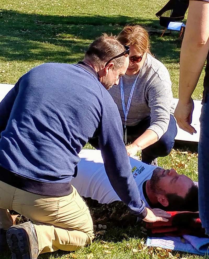 City Park, Denver, Colorado was transformed into the site of a plane crash disaster. The mock incident resulting from a mid-air collision between 2 planes causing a mass casualty event involving the plane occupants and people who had gathered for a charity walk/run on the walking path below. Several missing individuals were displaced in a countryside area away from the major crash site. Planes were hauled from Wichita, Kansas providing realism. Attendees rotated through a variety of stations each presenting special challenges.