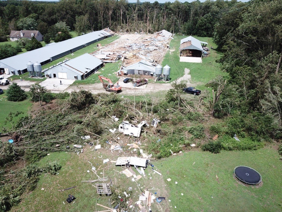 Figure 2 - Drone footage of EF2 tornado damage from Tropical Strom Isaias in Stockton, MD. Courtesy from the National Weather Service