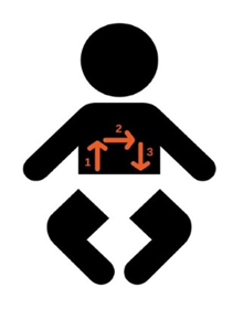Figure 3. Picture frame pattern to scan the abdomen. In 1 and 3 above your probe should be in the transverse orientation with the marker pointing towards the patient’s right. In 2 above, the prove marker should be in the sagittal orientation with the marker pointing towards the patient’s head