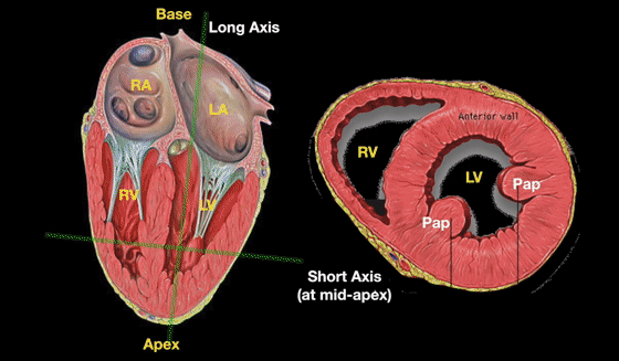 If placing the probe on the 3rd or 4th intercostal space with the indicator pointed to the right shoulder (or left elbow, depending on the convention) consistently yielded an adequate parasternal long axis window, then echo would truly be easy for all novices. However, there is significant variation between the position of the heart and the surface anatomy. For example, patients with ascites or elevated left hemi-diaphragms have hearts situated more superiorly, with a leftwardly displaced apex. Patients with obstructive lung disease or long thoraces, tend to have more inferiorly displaced hearts with apexes that are more rightward.