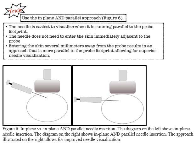 Emergency medicine physicians commonly perform painful procedures including laceration repair, reductions of fractures and dislocations, incision and drainage of abscesses and debridement of burns. Local anesthesia is an essential component of procedural pain control. Direct infiltration of local anesthetic is only efficient for simple wounds in cooperative patients. Nerve blocks allow physicians to anesthetize large anatomic regions with smaller volumes of local anesthetic than would be required for direct infiltration. Ultrasound (US) guidance for nerve blocks allows physicians to target peripheral nerves under direct visualization which may improve first pass success compared to the landmark approach to regional anesthesia.1-2