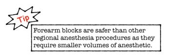 - Track the nerve up and down the forearm to find the optimal site for safe injection. Ensure that your targeted nerve is at a safe distance from the vessel.