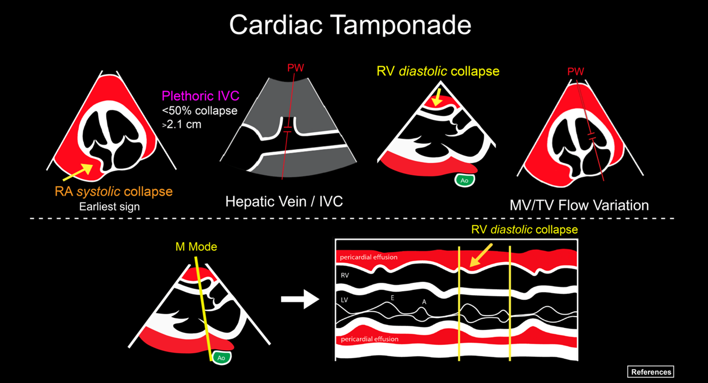 Alerhand S, Adrian RJ, Long B, Avila J. Pericardial tamponade: A comprehensive emergency medicine and echocardiography review. Am J Emerg Med. 2022;58:159-74.
