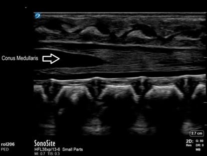 Figure 3. Conus medullaris visualized in long axis prior to lumbar puncture in infant