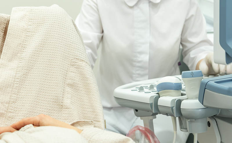 The patient should be placed in a supine position with the scrotum being supported by a towel and the penis held out of the field of view. (Image 5) This can be done by placing the penis cranially on the abdomen and placing a towel on top of the penis. Use a copious amount of gel to reduce pain and improve acoustic coupling. Pain medication may be needed to complete a thorough testicular POCUS exam.7