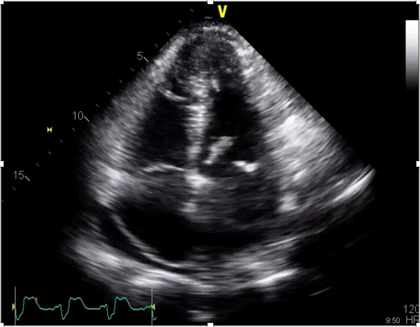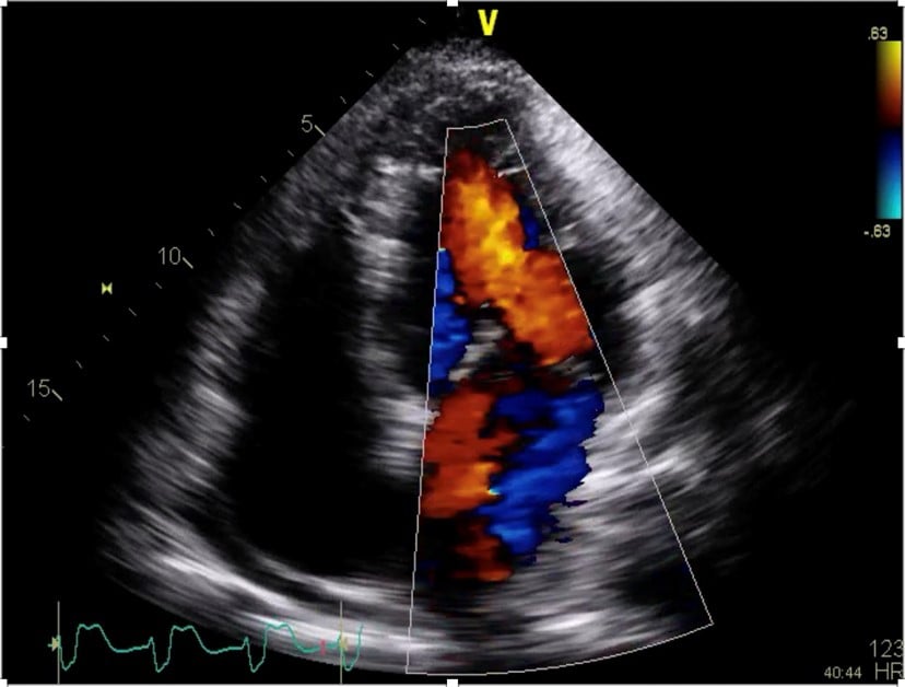 Figure 1. Apical 4 chamber view of a flail posterior mitral valve leaflet.