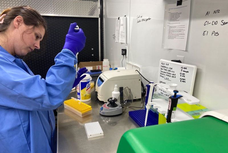 Taylor Koepfler, MSFS, MU Forensic Science Center, preparing a qPCR plate during the 2023 National Boy Scout Jamboree.