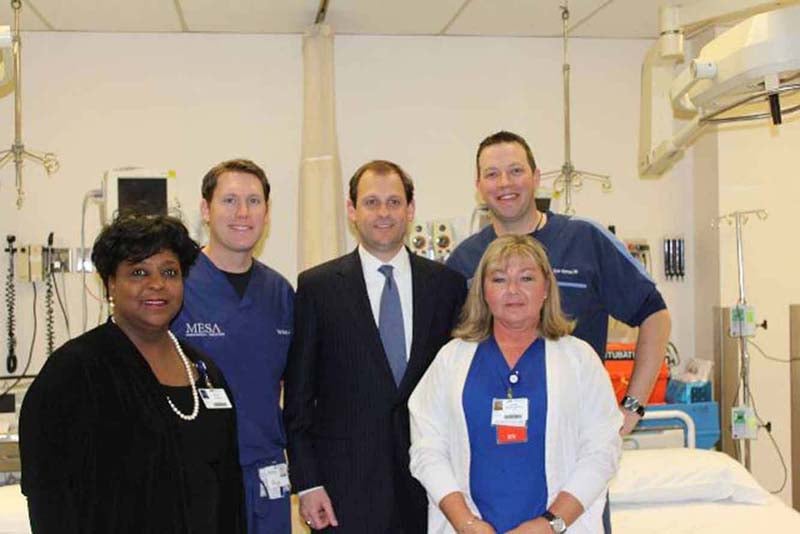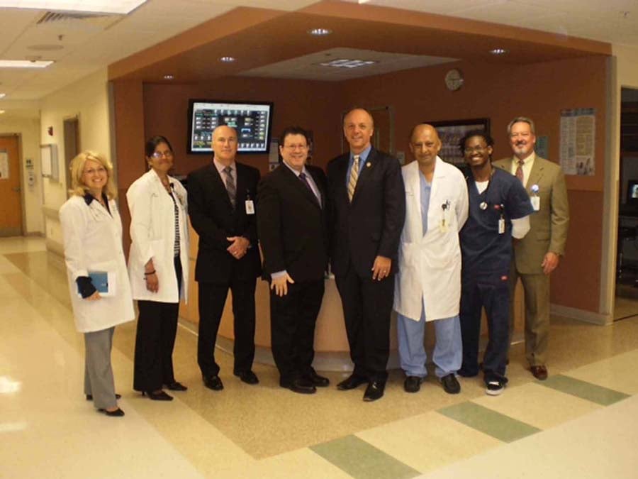 Dr. Frederick Schiavone, Dr. Peter Viccellio, and staff with Congressman Lee Zeldin (R-NY) at Stony Brook University Hospital