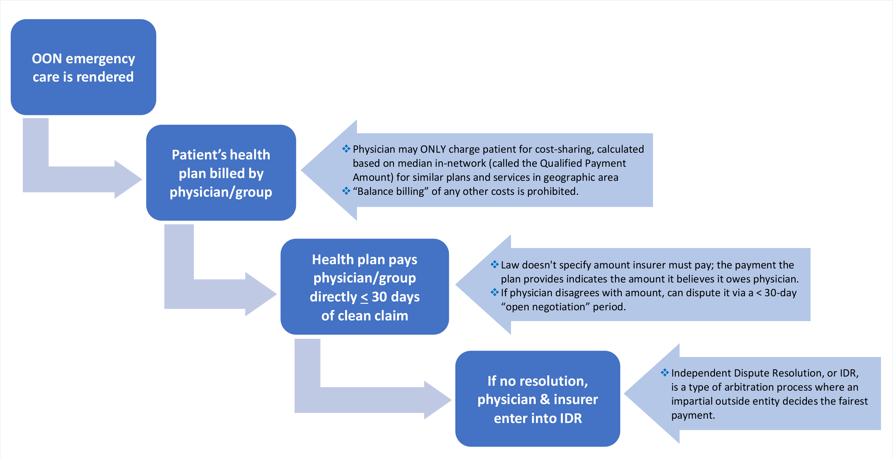 ER physician submits claim to patient's insurer. The patient is only responsible for any costs as if in-network, and is now out of the middle.
