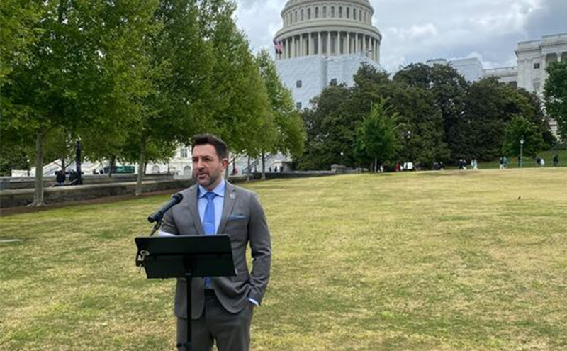 Caption: James Phillips, MD, FACEP, a Washington, DC-based emergency physician who specializes in workplace violence research, speaks at the press event hosted by ACEP & ENA on May 3.