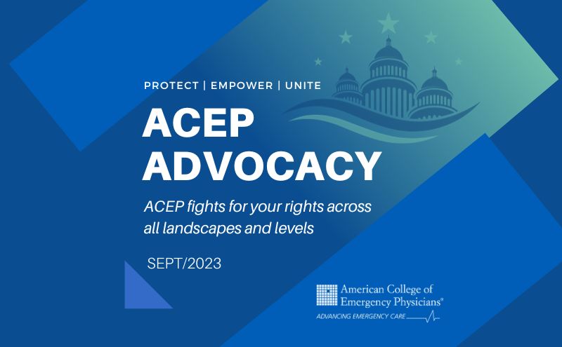 This month, ACEP advocacy delivered multiple wins for emergency physicians and patients. We are proud to use our platform to ensure policymakers and regulators hear straight from you about the major challenges facing your practice and patients right now.