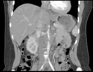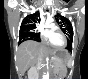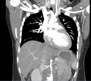 Patient underwent CT angiogram of her chest and abdomen emergently and the findings were suspicious for “periaortitis in association with midaortic syndrome with severe stenosis/near occlusion of the infrarenal aorta, bilateral renal arteries, celiac trunk, and SMA.” Findings that could represent a vasculitis versus neoplastic process.