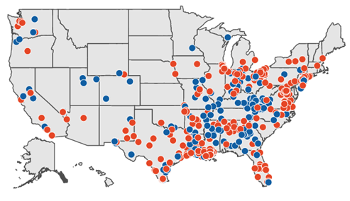 **Locations of EDs currently involved with the E-QUAL Opioid initiative.