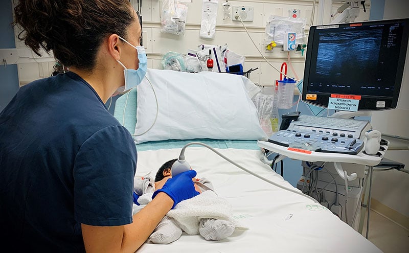- Point-of-care ultrasound performed by pediatric emergency medicine providers looking for intussusception—after only one hour of training—has a sensitivity of 85% and specificity of 97%. The negative predictive value was 97%.5