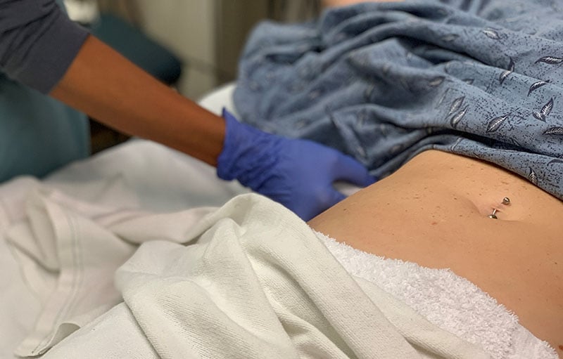 • Increasing the depth of the image, applying more pressure, and having the patient take a deep breath will improve chances of obtaining a good image.