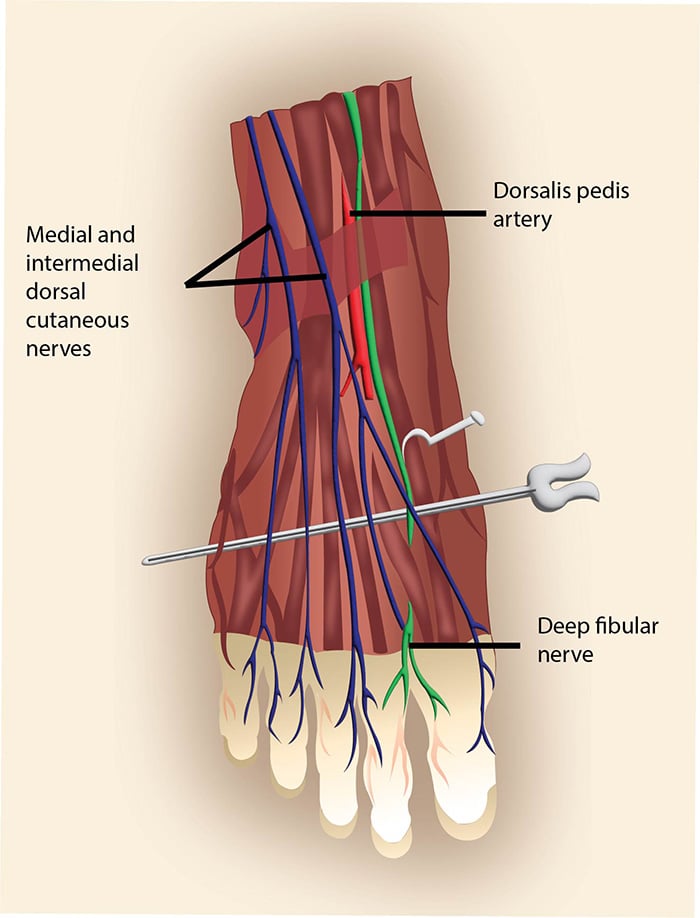 - The nerve will often become visible after injecting around the dorsalis pedis artery.