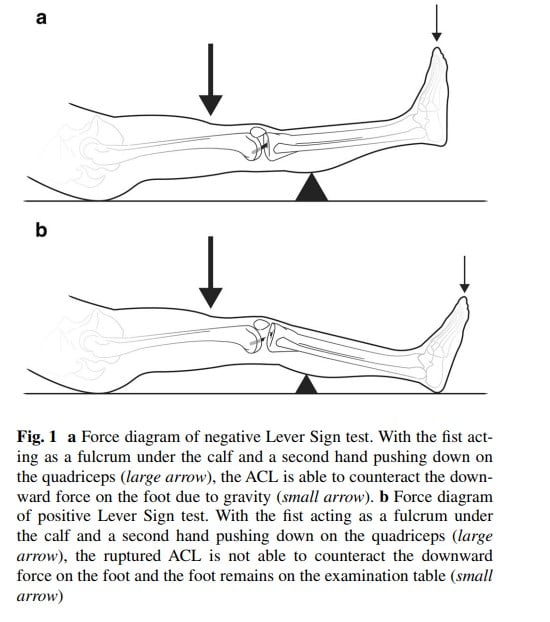 - Lelli, Alessandro, et al. "The “Lever Sign”: a new clinical test for the diagnosis of anterior cruciate ligament rupture." Knee Surgery, Sports Traumatology, Arthroscopy 24.9 (2016): 2794-2797.