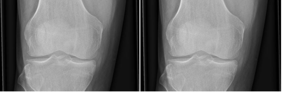 He has no significant medical history. He is limited by pain but does not endorse weakness. There is no change in sensation described. His pain is unilateral, with no pain to the left knee. He has never had this pain before six months ago. There is no radiation.