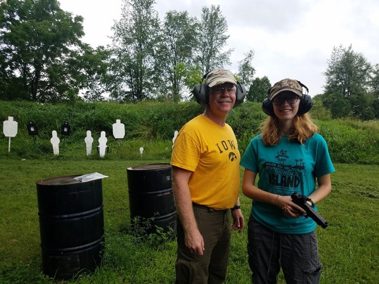 Photo 5 – An enjoyable afternoon at the range with daughter Libby. She is a natural pistol shot. In a full-sized fighting pistol, the 9mm +P jacketed hollow point ammunition is very controllable for most shooters and is an excellent defensive round.