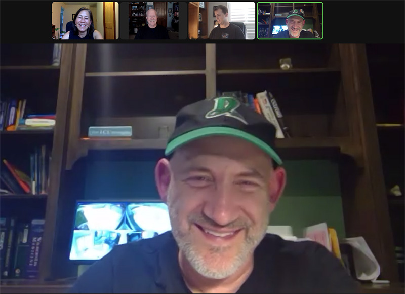 From large center picture clockwise: Dr. Brian Springer, Dr. Dominique Wong, Dr. John Wipfler, Dr. Keegan Bradley. One of many planning and strategy Zoom calls.