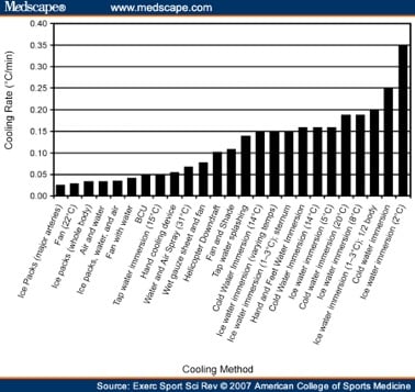 The most rapid cooling rates are achieved with cold water immersion, making this the gold standard for treatment.