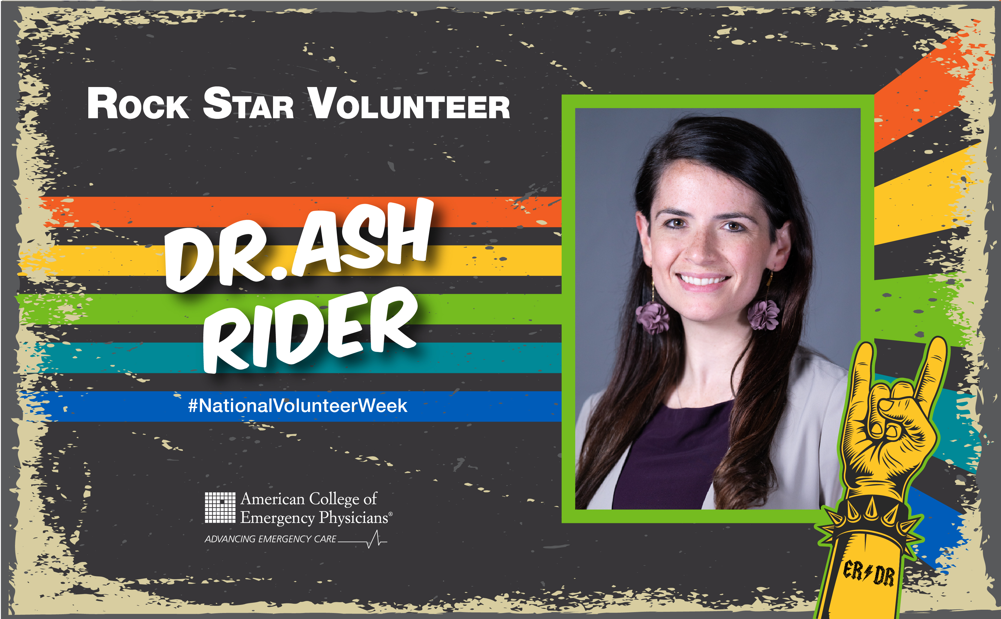 Dr. Rider’s volunteer work with ACEP enables her to recognize the biggest issues facing emergency physicians and gives her a platform to identify opportunities to collaborate on improvements for care teams and patients.