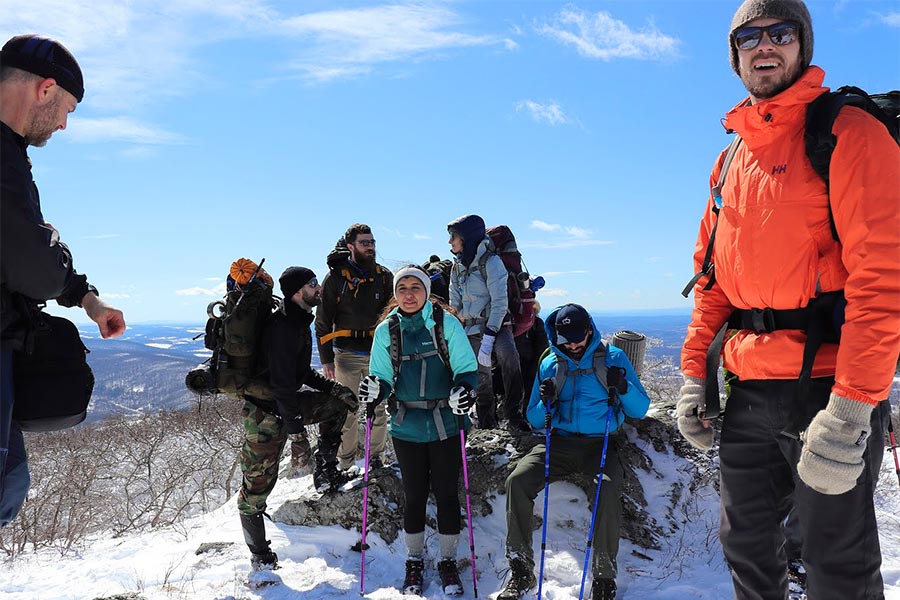 UCONN EM residency first Wilderness Medicine Backpacking Weekend climbing Mt Alander in Mt Washington State Park, Massachusetts in late March