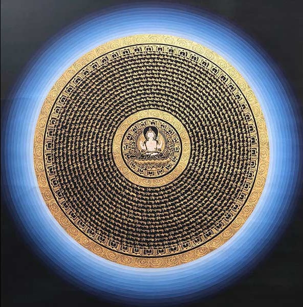 Flag and the God of Compassion at a sky burial site. Bhutan
