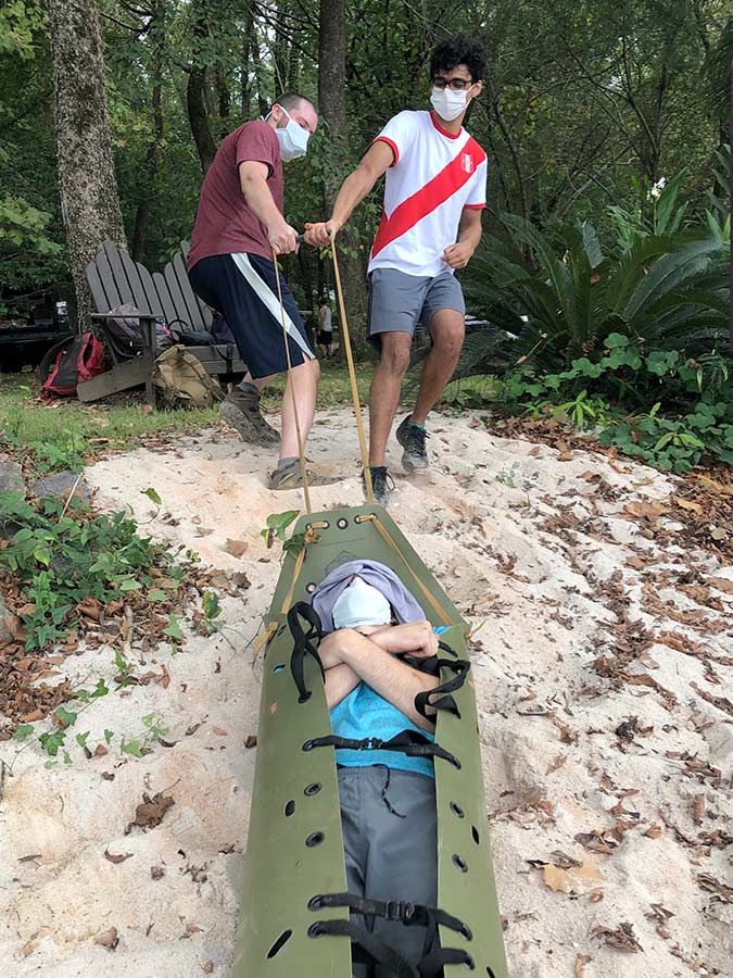 "Sked Evacuation" During Medical College of Georgia Wilderness Medicine Day residents and students practice evacuation by sked