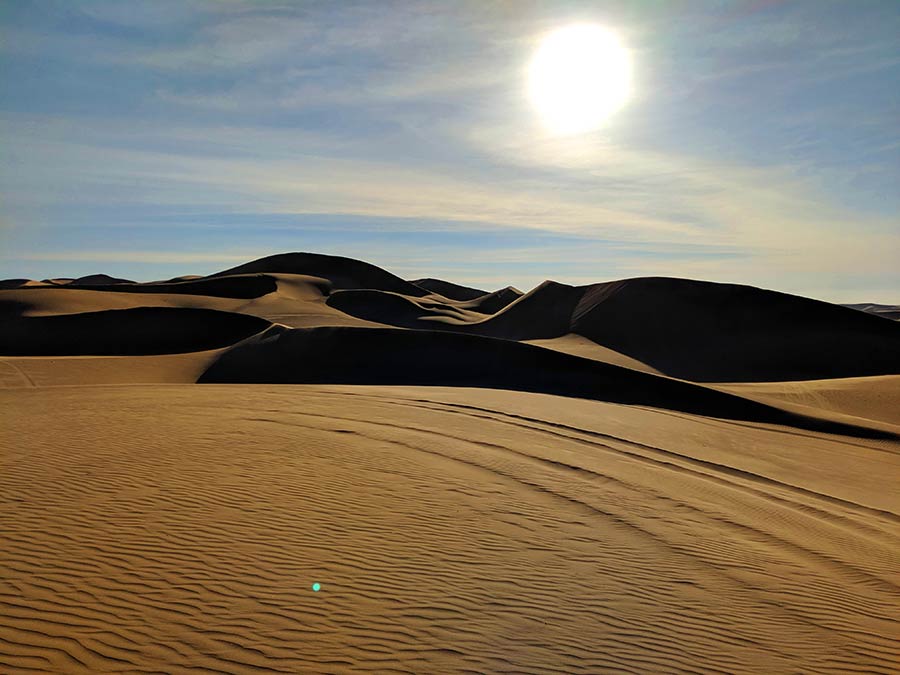 Driving through the Black Desert of Egypt. A land mass covered in volcanic dolerite dating back 180 million years